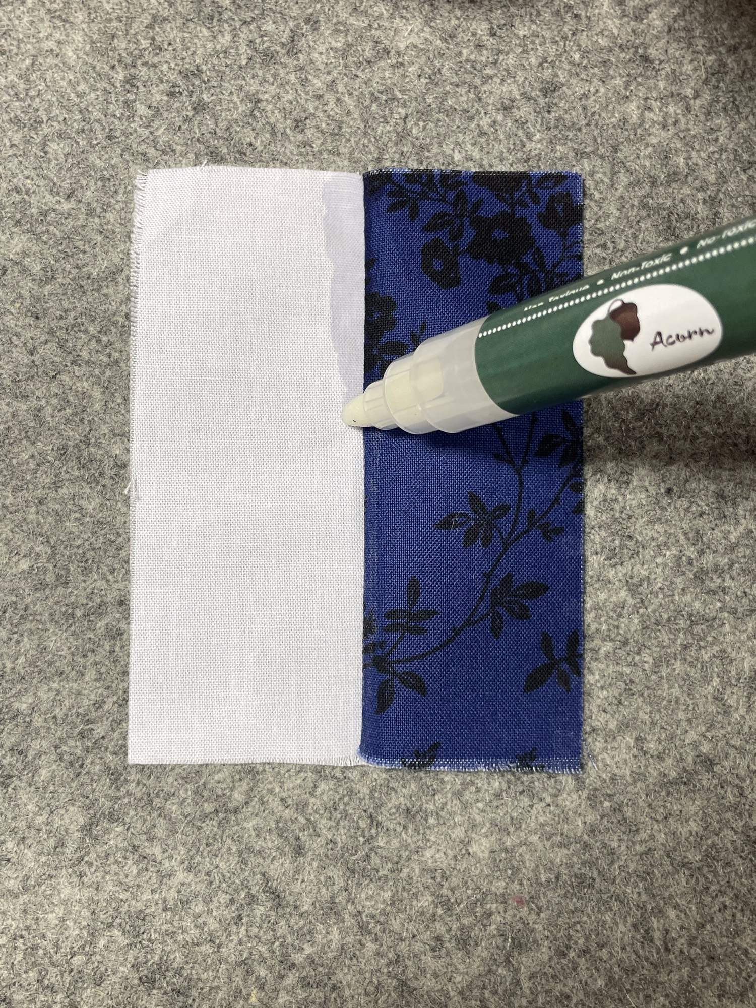 Gently depress the pen nib and then evenly apply the Easy Press Fabric Treatment™ to the high side of the seam.